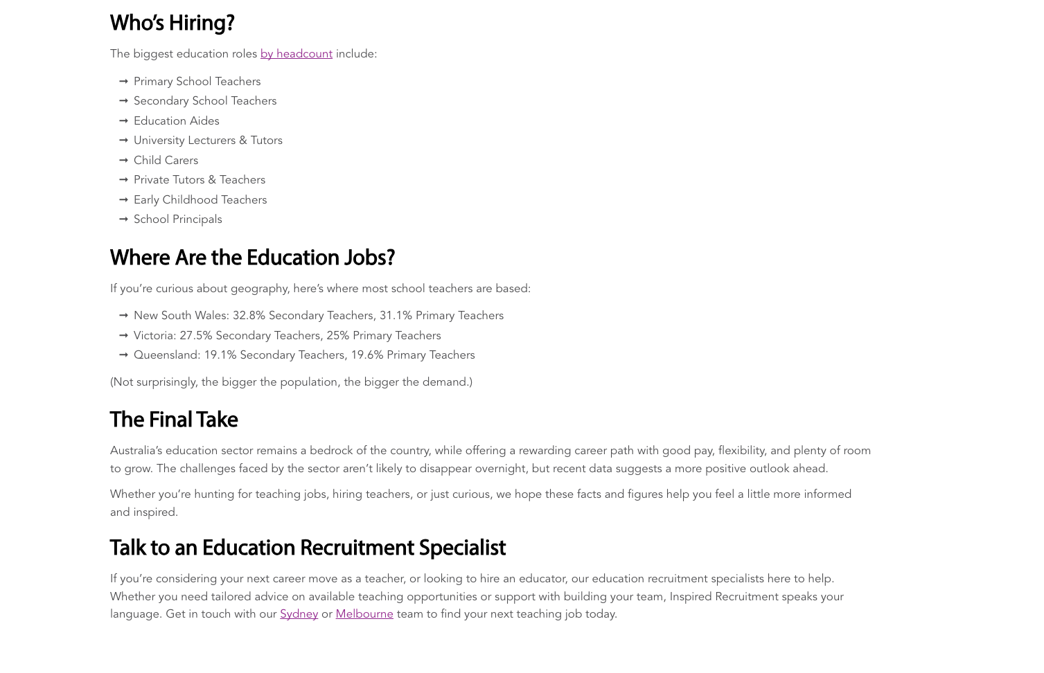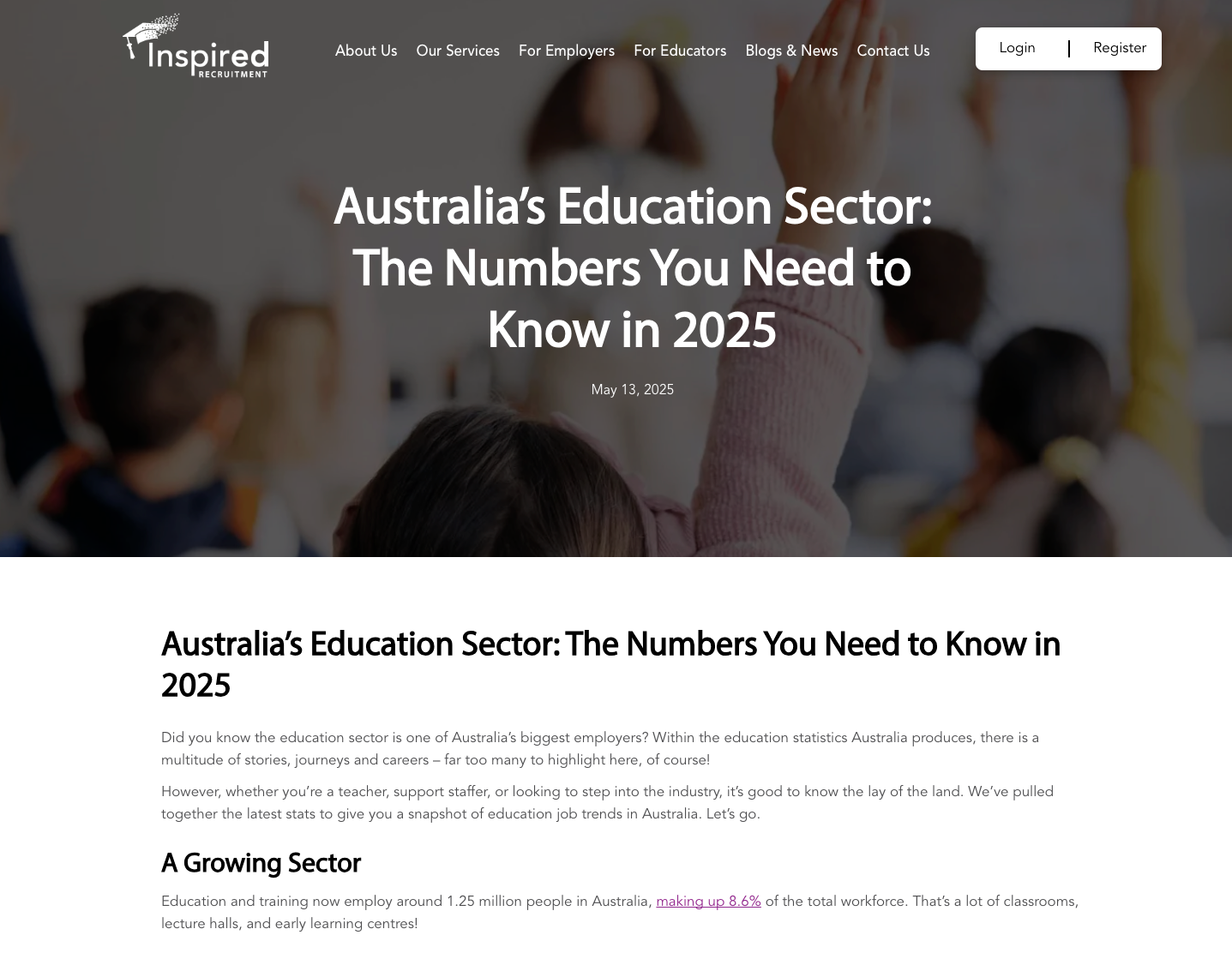 Inspired Recruitment, 'Australia’s Education Sector: The Numbers You Need to Know in 2025' (company blog)