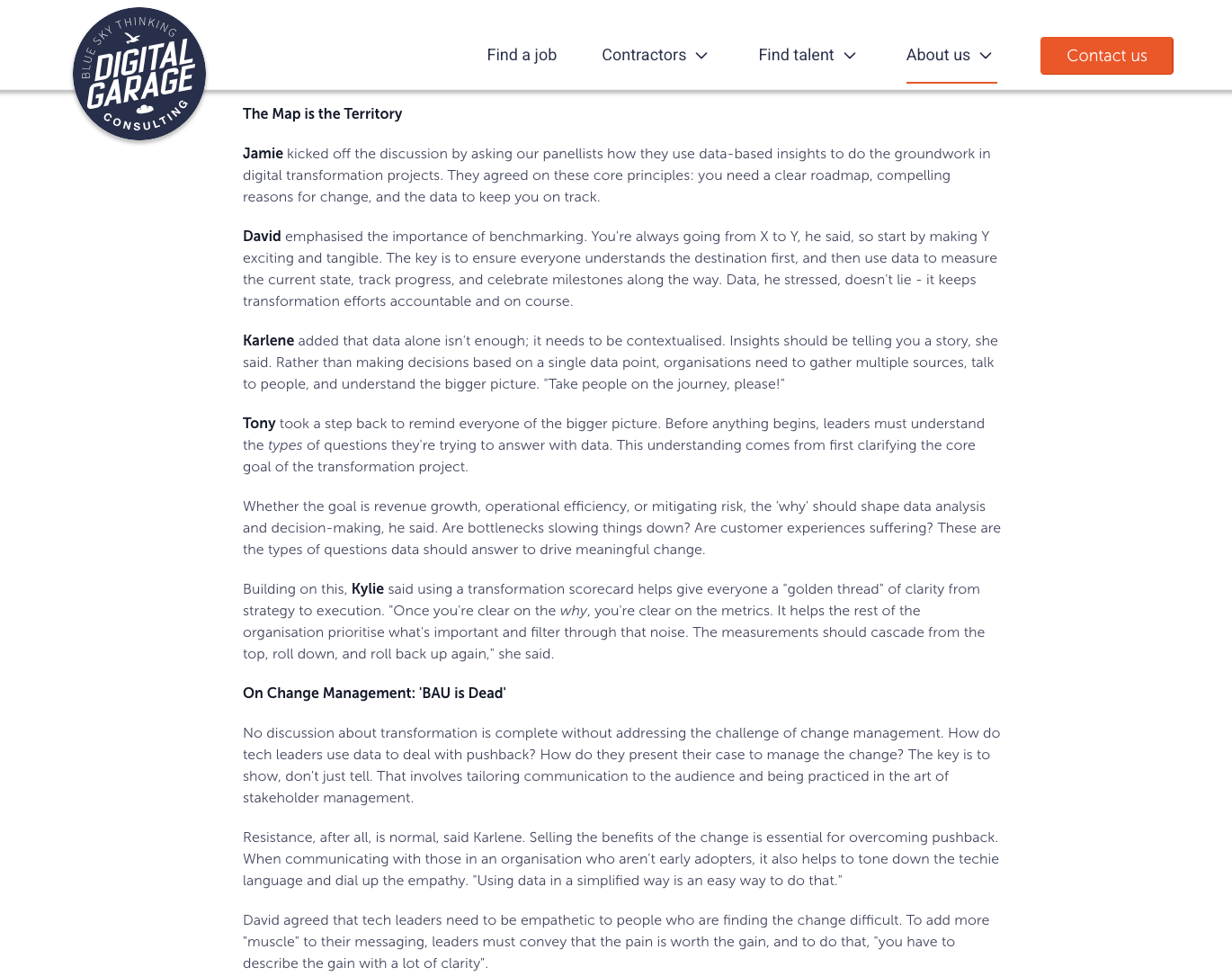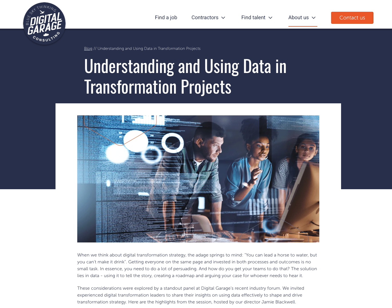 Digital Garage, 'Understanding and Using Data in Transformation Projects', (company blog, New Zealand)