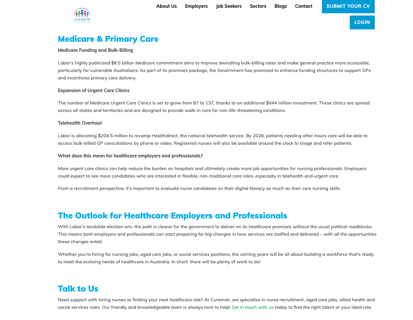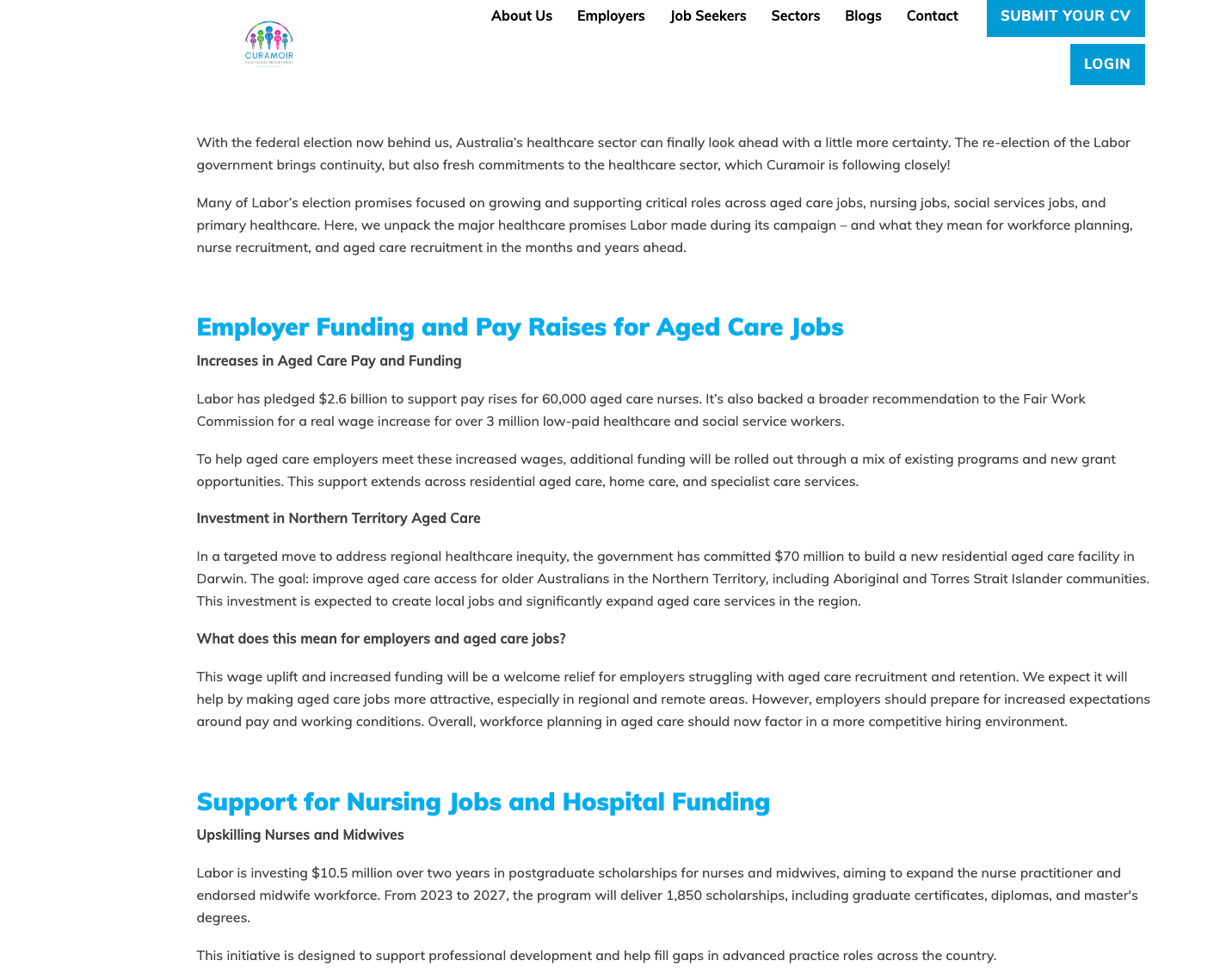Curamoir, 'What Labor's Re-Election Means for Australia's Healthcare Workforce' (company blog, Australia)
